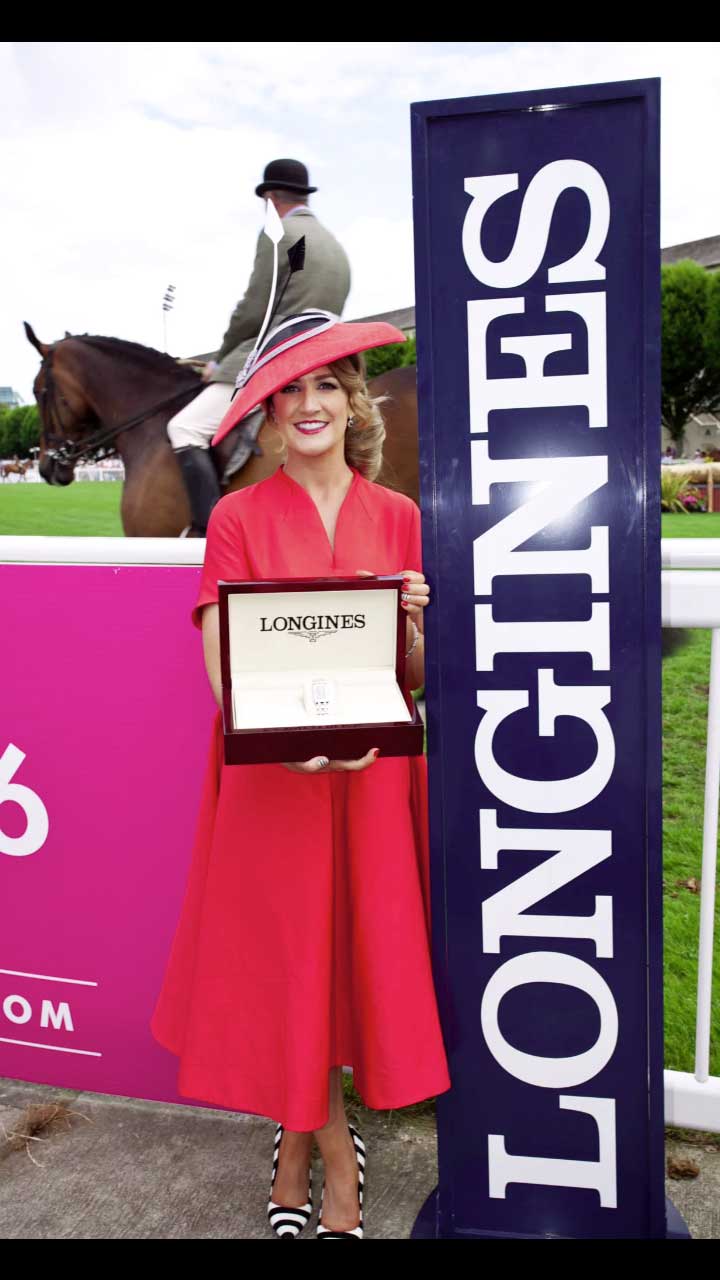 Rebecca Quigley from Coolnalong, who is the lady behind the Facebook blog Rebecca Rose Stylist, was chosen as overall winner in the Longines ‘Elegance is an Attitude’ category on Thursday last, 21st July. This was her second year attending the show and she took home a Longines ‘Dolce Vita’ watch encased in steel and decorated with diamonds. The RDS Dublin Horse show is one of the bigger events in the horsey calendar and glamorous ladies come out in force, pulling out all the stops to win big prizes. This year over 400 ladies registered for the competition, which makes Rebecca’s win all the more impressive.