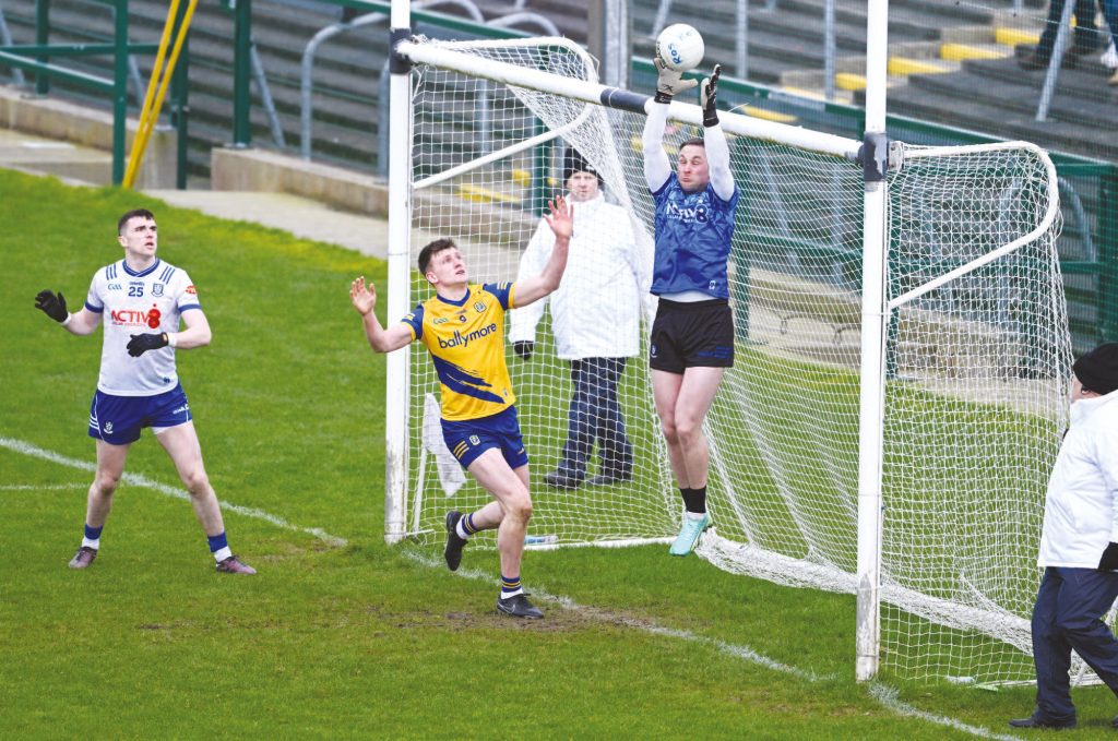 The pace and directness that lit up that win over the Dubs has been marked absent of late, with injuries to its main architects (Stephen O’Hanlon and Mícheál Bannigan) not helping Monaghan’s cause. Vinnie Corey couldn’t hide his frustration at his team’s looseness in possession, which saw them concede 20 turnovers, being called for no fewer than nine technical fouls, six in the first half alone. It was the second game in a row that Monaghan had been comprehensively beaten on the turnover count. Referee Brendan Griffin didn’t endear himself to the travelling support at times, while he also awarded Roscommon a controversial goal just after the restart, having consulted with his umpires.